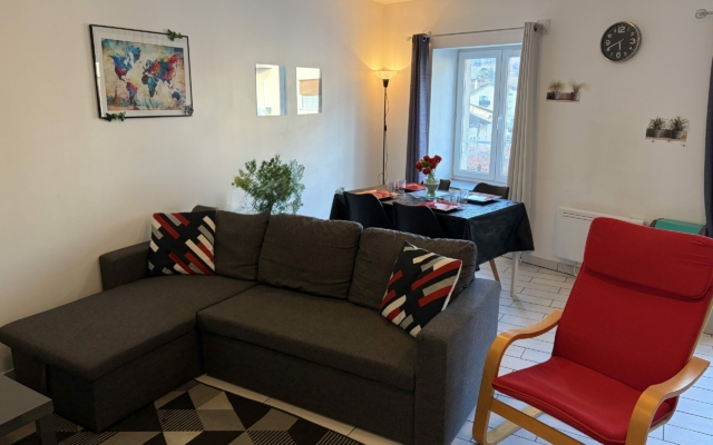 Vous êtes au cœur de Lagnieu dans la rue principale : à quelques pas des commerces (supermarché, commerces, marchés, foires, parc, piscine, …).
