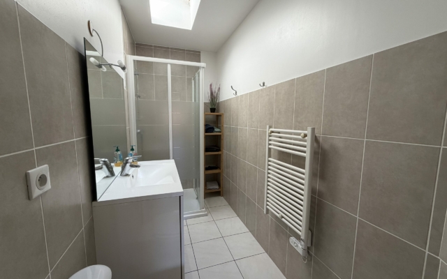– d’une salle de bain avec douche,